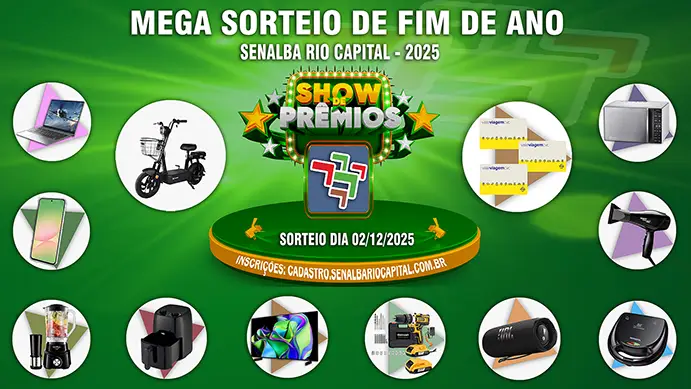 O Senalba Rio Capital preparou uma premiação de peso para fechar o ano com chave de ouro. Serão sorteados itens incríveis, incluindo um prêmio principal e vales para viagens: